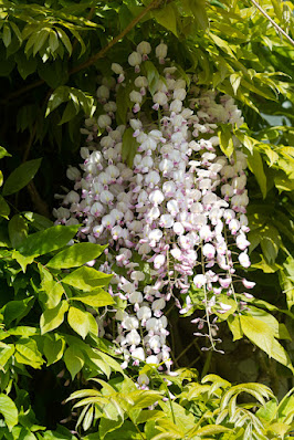 The first of my roses to bloom is the fragrant 'Gertrude Jekyll', closely followed by the reliable climbing rose and abundant shrub 'Blue for you'. All the other roses keep their buds tight. Aphids kept away by busy Blue Tits, but cherry trees suffering with blackfly this year.